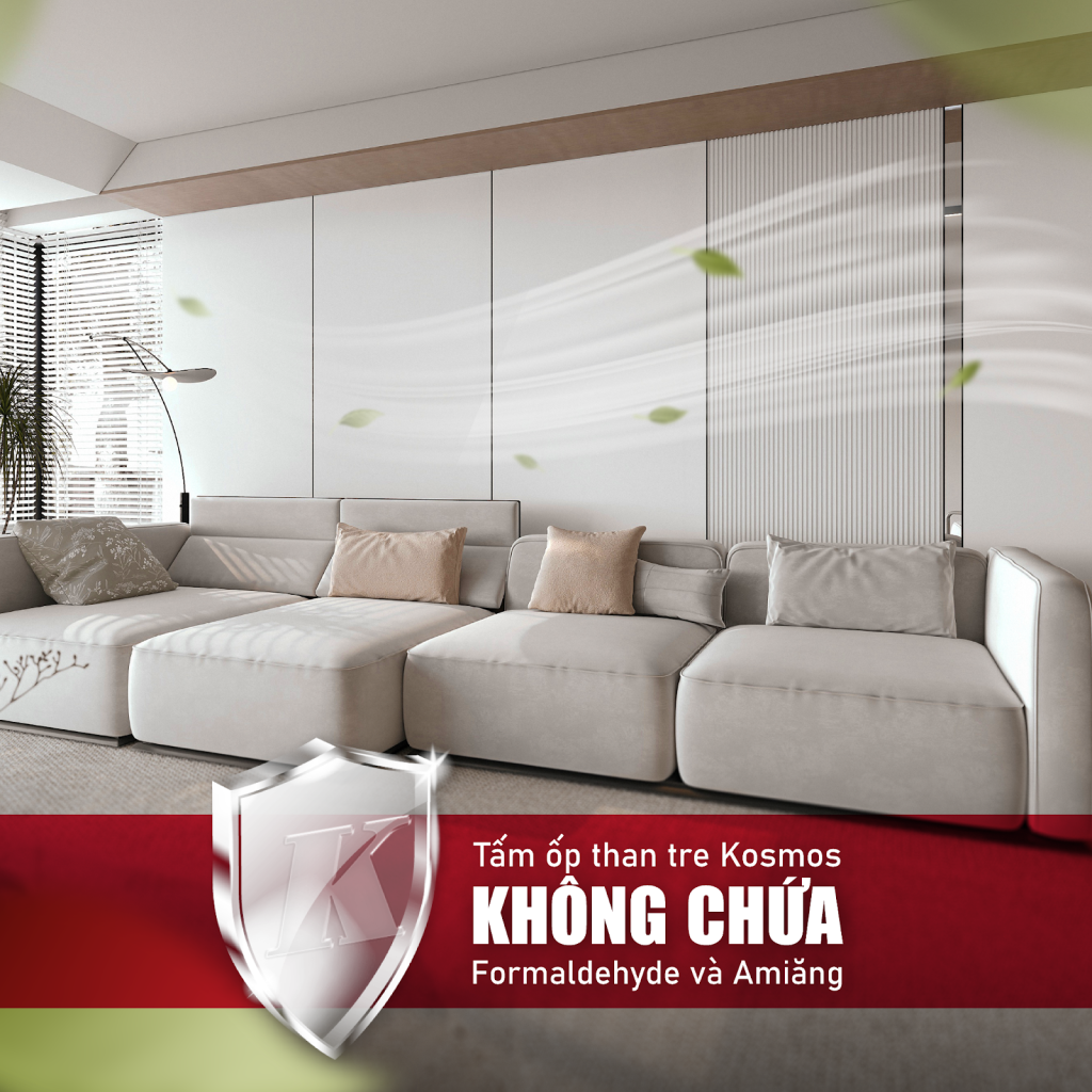 Không chứa Formaldehyde: Formaldehyde là một hợp chất hữu cơ bay hơi, có thể gây dị ứng, hen suyễn và các vấn đề hô hấp khác. Tấm ốp than tre Kosmos được sản xuất bằng công nghệ hiện đại, không sử dụng keo chứa Formaldehyde, giúp đảm bảo không khí trong nhà luôn trong lành và an toàn cho sức khỏe của trẻ nhỏ.