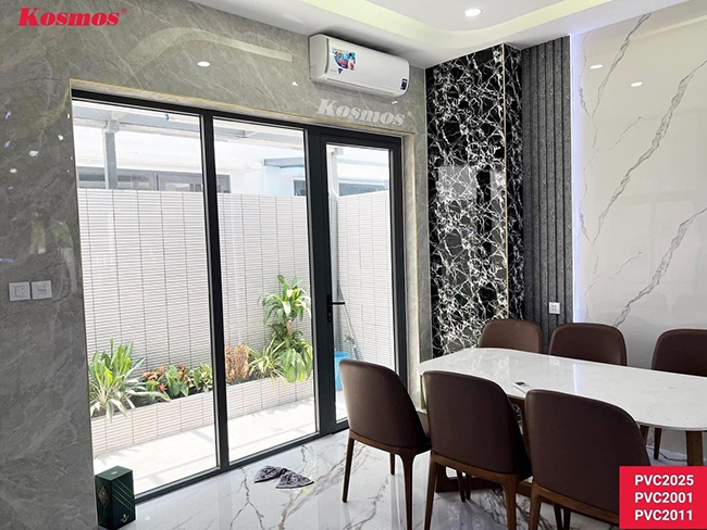 Kết hợp giữa tấm lam sóng nhựa và tấm PVC vân đá